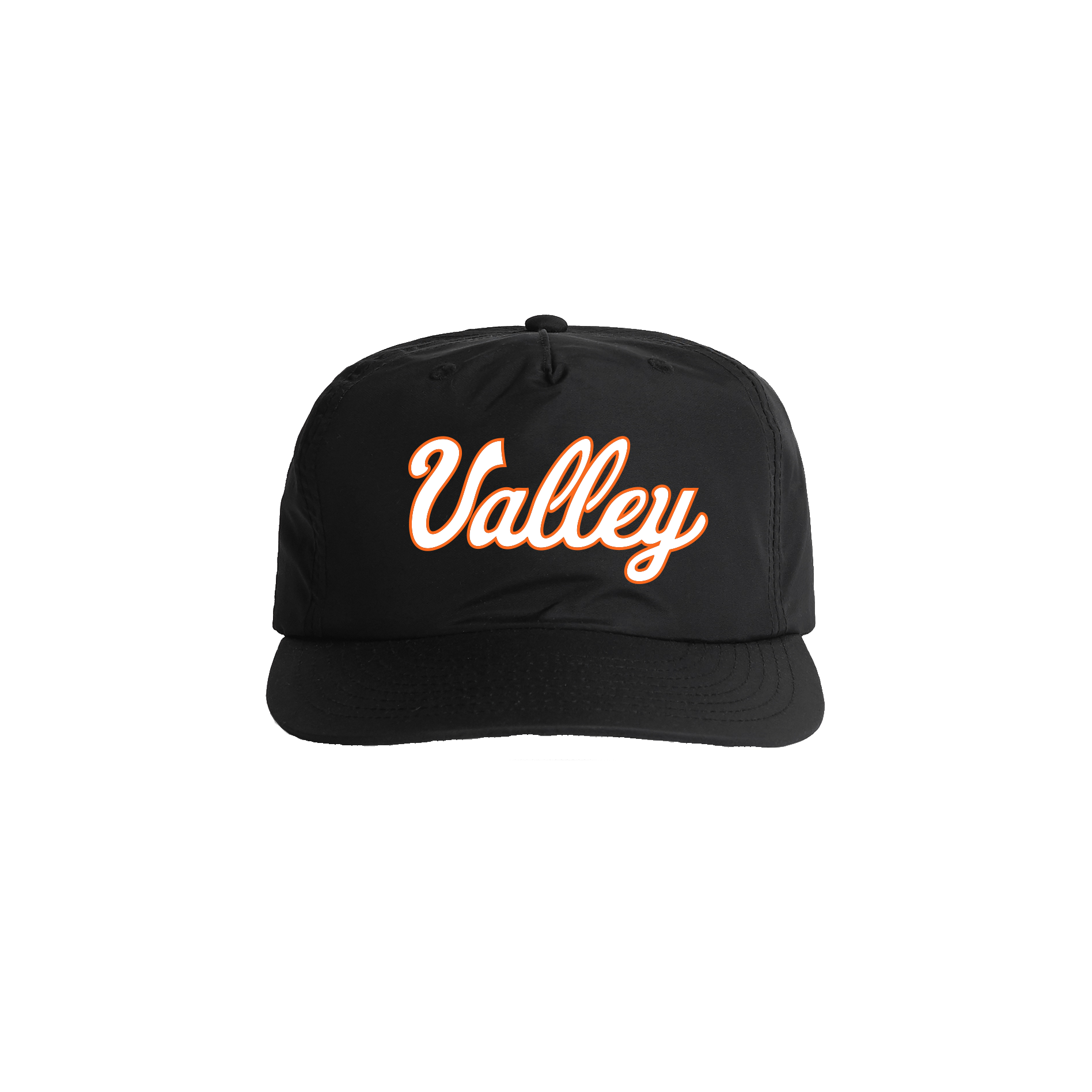 Valley Script logo on Lightweight, mid-profile, quick-dry 100% recycled nylon. Unstructured snapback with plastic snapback closure.